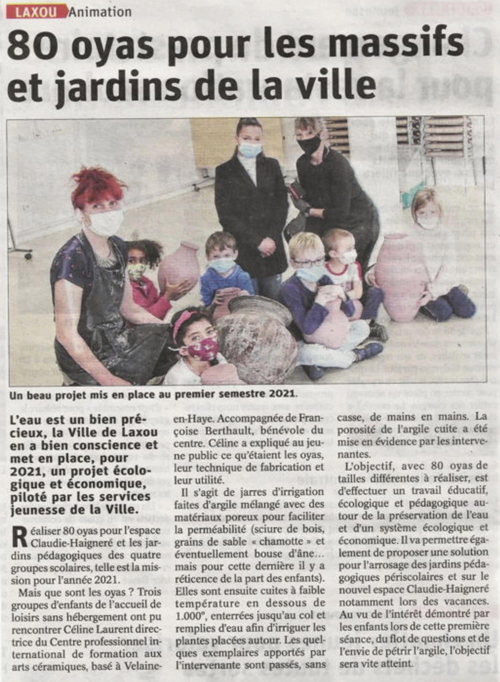 4 écoles participent à un projet mené par Céline Laurent en commun pour la ville de Laxou : création de poteries OYAS pour les jardins de la ville. Collecte de l'argile et mélange avec de la sciure, du sable et du mika.